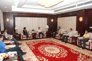 在公司贵宾室,朱会长与我公司和卓尔棉业集团的负责人进行了座谈。市委副书记、市长吴锦参加了座谈会,并就当前棉花及棉纺行业的有关情况同朱会长交换了意见。