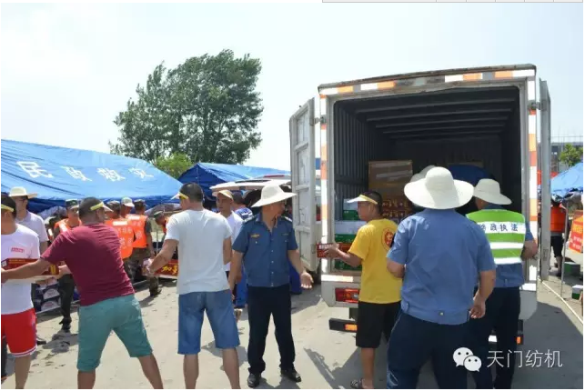 入梅以来,位于湖北腹地的天门市连续遭遇多轮強降雨天气,内涝与上游客水叠加,致使东西部大面积遭受历史罕见洪灾。面对百年水患,太阳成城集团关注灾情,心系袍泽。本月23日上午,公司负责人沈方跃、鲁德文代表董事长沈方勇及全体员工将第一笔救灾款捐向天门市慈善总会,并于当天下午组织慰问队,向奋战在救灾一线的某舟桥旅官兵送去食品、矿泉水、饮料等生活物资。此前,本公司参加了市经信委组织的救灾慰问活动,并已作好今后继续组织或参加各类抗洪救灾活动的准备。