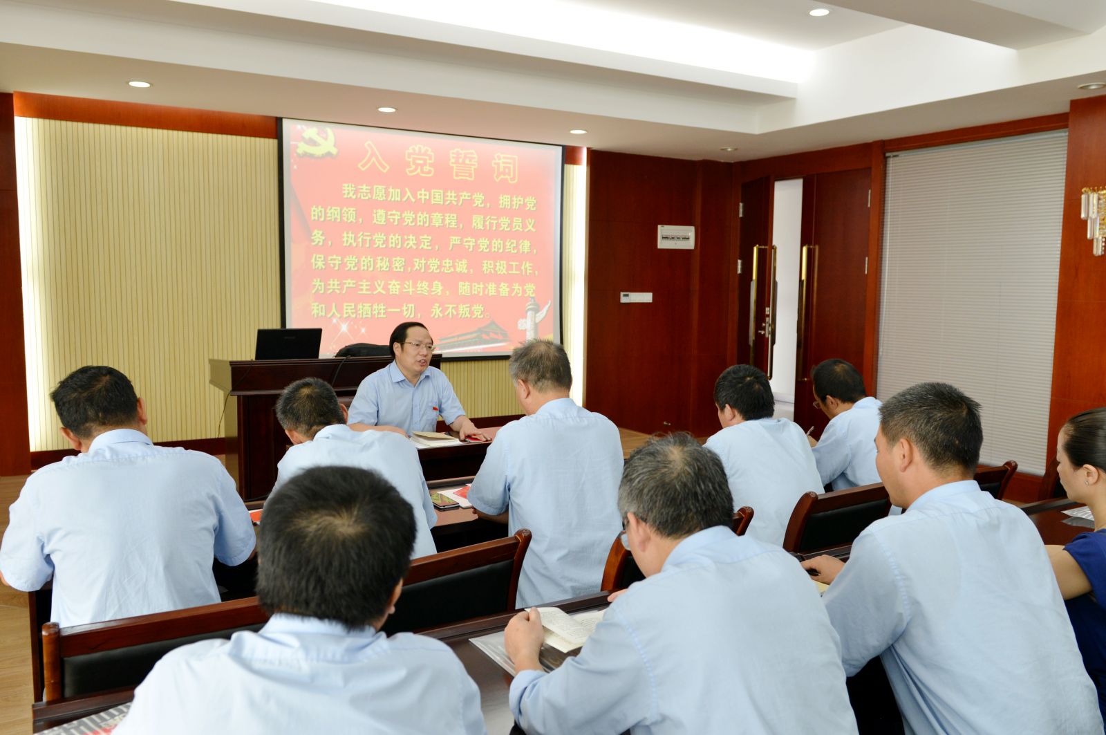 9月23日下午,公司党委组织全体党员进行了“重温入党誓词和学习党章”主题活动。党委书记鲁德文在活动中强调了公司开展“两学一做”活动的重要性和必要性,并对参会党员进行了《党章》的辅导学习。