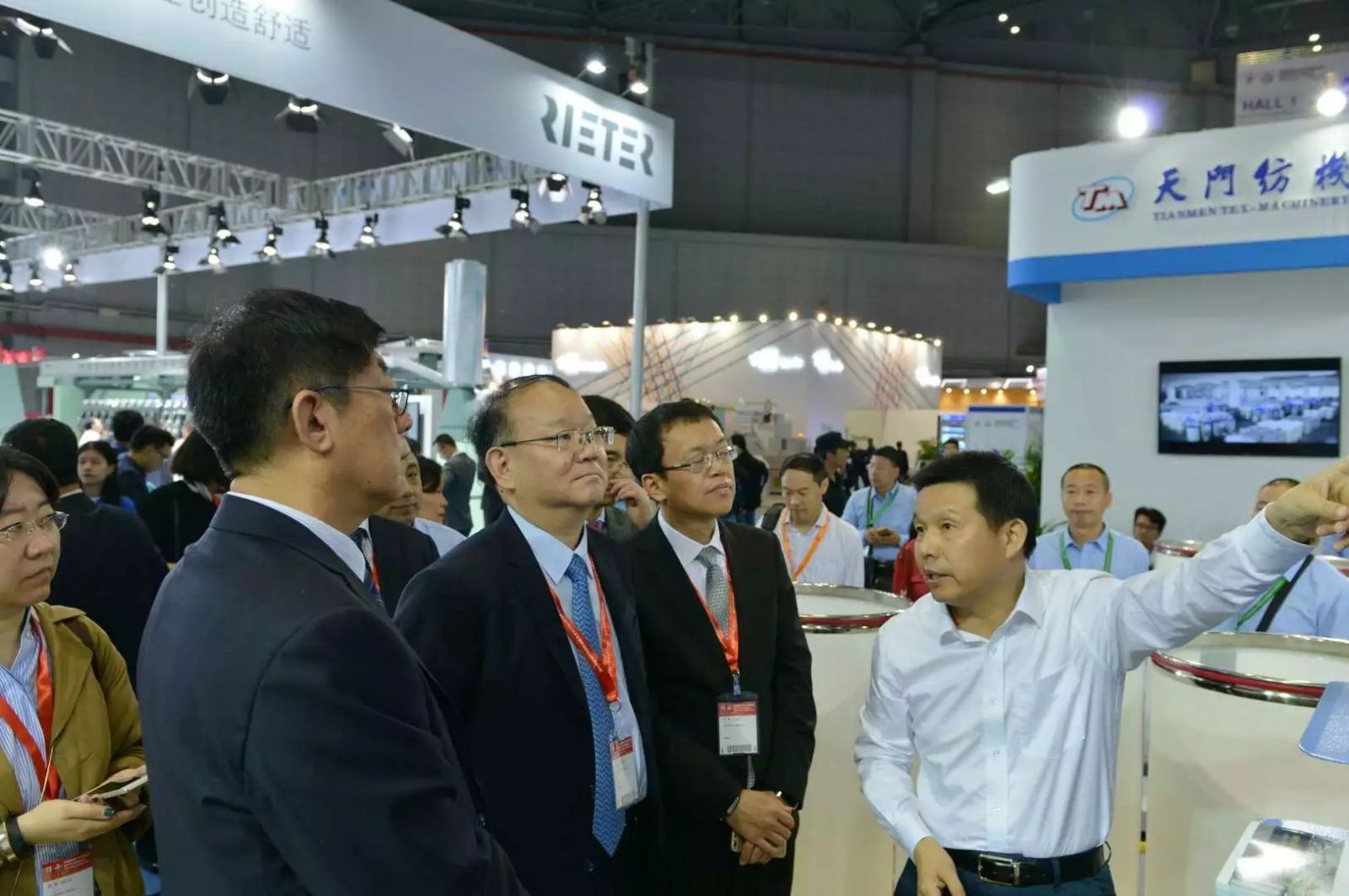 中国国际纺织机械展览会暨ITMA亚洲展览会10月21日在国家会展中心(上海)隆重开幕,中纺联秘书长高勇、中国纺织机械协会会长王树田、中国棉纺织协会会长朱北娜等领导莅临公司展位参观指导。