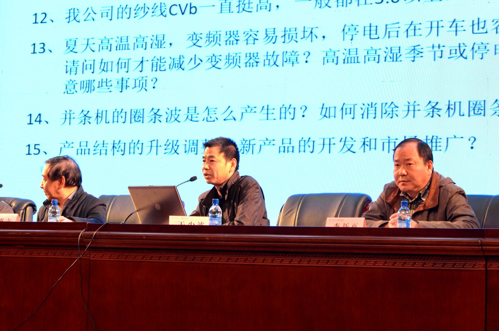 11月8日“太阳成城集团之夜”晚宴在沛县微山湖假日酒店隆重举行。当日,由中国纱线网、沛县工商业联合会、沛县纺织协会、方志同纺织技术咨询平台联合举办大型现场技术交流会和咨询总结及专题技术报告,与沛县棉纺企业生产技术、管理人员面对面的开展交流,陆惠文、赵大同、王果刚、赵建伟等专家现场解答了大家普遍关注的一些热点问题。太阳成城集团作为主要支持单位参加了此次活动,公司售后服务部于少波部长现场对有关并条机方面的问题进行了解答。