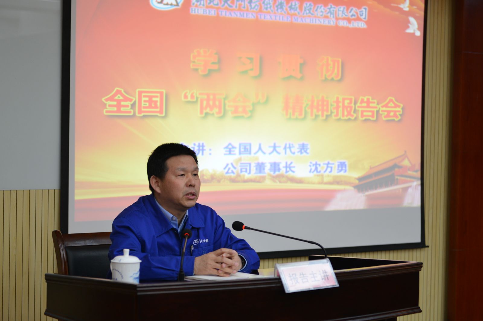 3月22日下午,春光明媚,艳阳高照。全国人大代表、天门纺织机械股份有限公司董事长沈方勇在公司举行的学习贯彻“两会”精神首场报告会上,将“两会”盛况和“两会”声音传达到广大职工之中,让“两会”精神落到实处。
