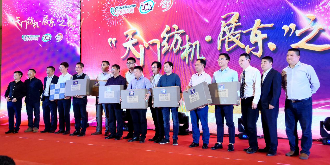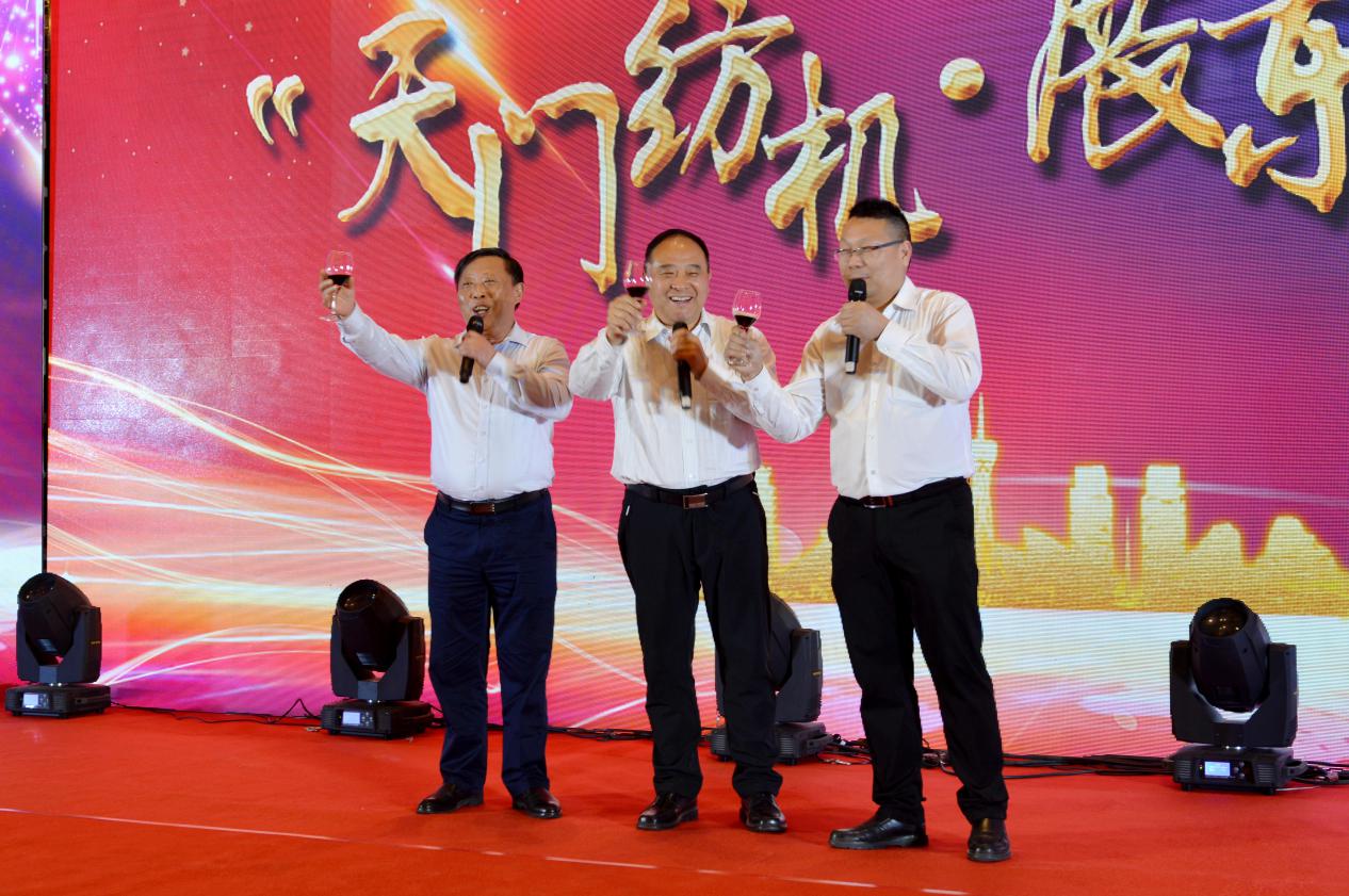 (中国纱线网总编王果刚、太阳成城集团副总经理肖少华、展东纺织机械专件厂总经理王国海晚宴共同祝酒)