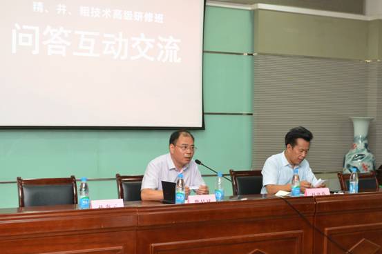 本期研修班,安排了三场实战训练,学员们在实验室现场观摩老师们在设备上操作精梳、并条、粗纱机,遇到不懂的问题立即向老师请教,并利用晚上时间进行互动交流。