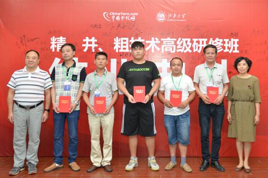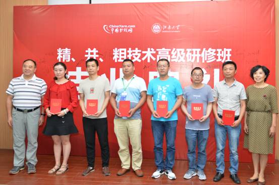 颁发证书的环节中,学员们从中国纱线网总编王果刚和江南大学谢春萍老师手中接过盖着钢印的结业证书,聆听来自领导们的鼓励,接受他人的肯定,回想这几天努力时洒下的汗水,一切都是值得的。