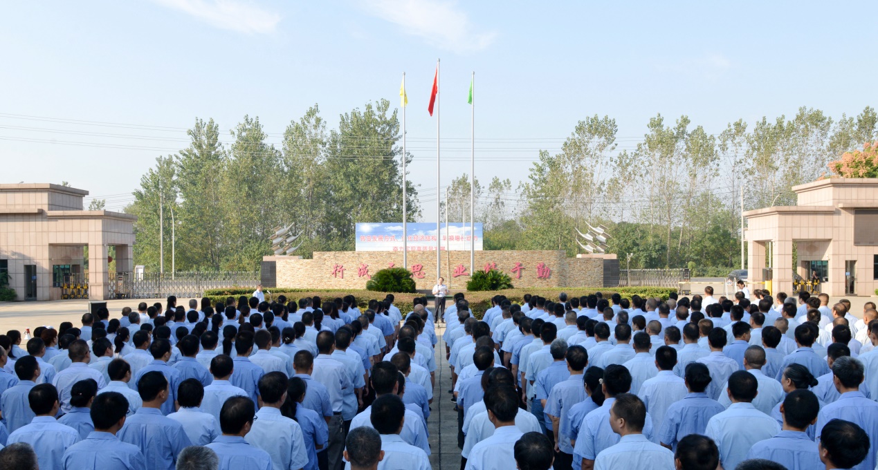 8:20时,活动仪式在总经理焦伦进的主持下启动,七名旗手迈正步从员工方队绕过,直达旗坛,行进口令威武响亮。在主持人的指令下,三名旗手将一面鲜艳的五星红旗在庄严的国歌声中徐缓地升上天空,员工方队注目国旗,唱起雄壮的国歌。