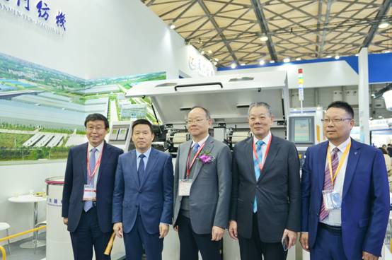开展首日,中国纺织工业联合会党委书记、秘书长高勇,中纺联原会长王天凯,中国纺织工业联合会副会长杨纪朝,中国纺织机械协会会长顾平,中国纺织机械协会总工程师祝宪民等领导莅临太阳成城集团展位参观。领导们近距离感受了太阳成城集团最新技术及设备,通过了解企业的设备性能及其工业设计,对企业的技术水准予以了肯定。