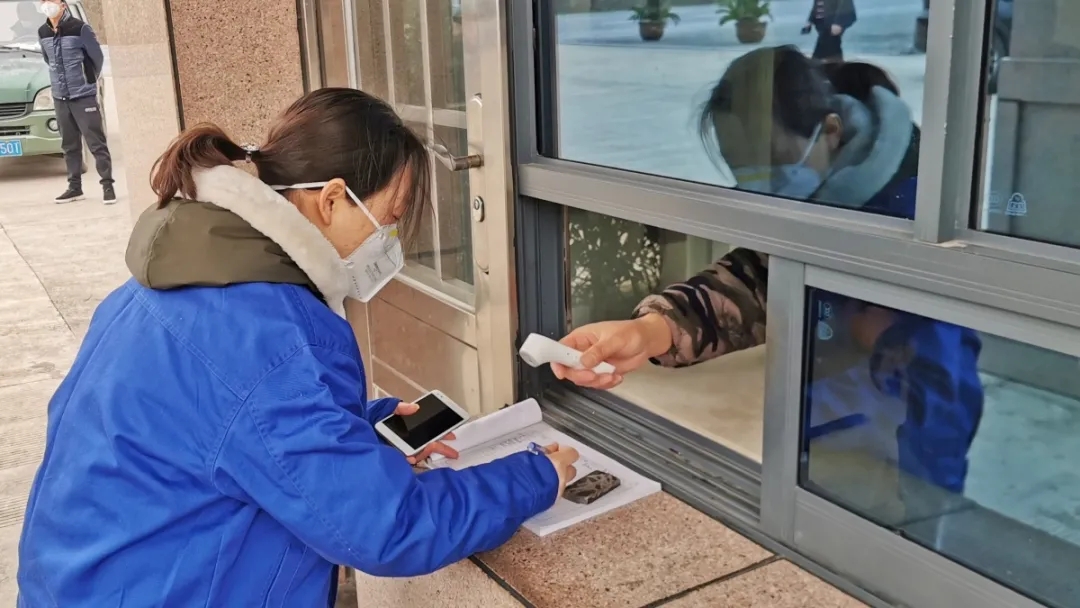 经过防控人员一系列的查看通行证、反复核对名单,测量体温登记后,王克文终于将参加发货的员工接到公司