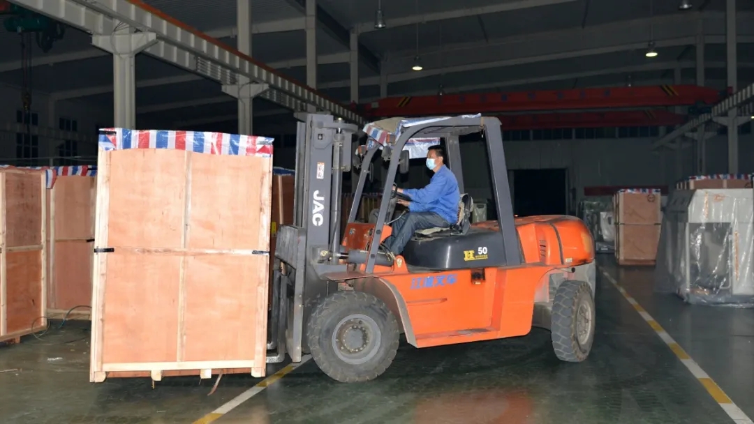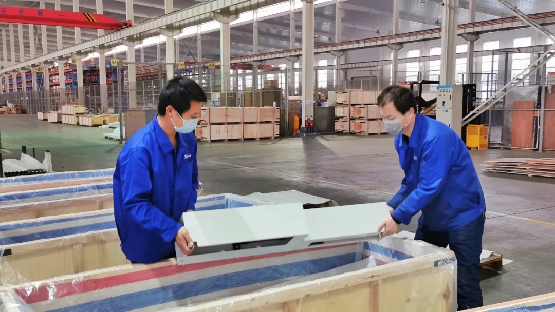 为了能够尽快给客户发货,太阳成城集团想方设法,协调了各方资源,克服了重重困难,终于开启了发货模式。春节前太阳成城集团根据2020年上半年的销售合同和全年的市场预测,物资采购充足,资金准备充足,同时加班加点,完成了一季度需发货的并条机生产任务,并适当地库存了一些产品,对客户的供货暂时不会造成影响。