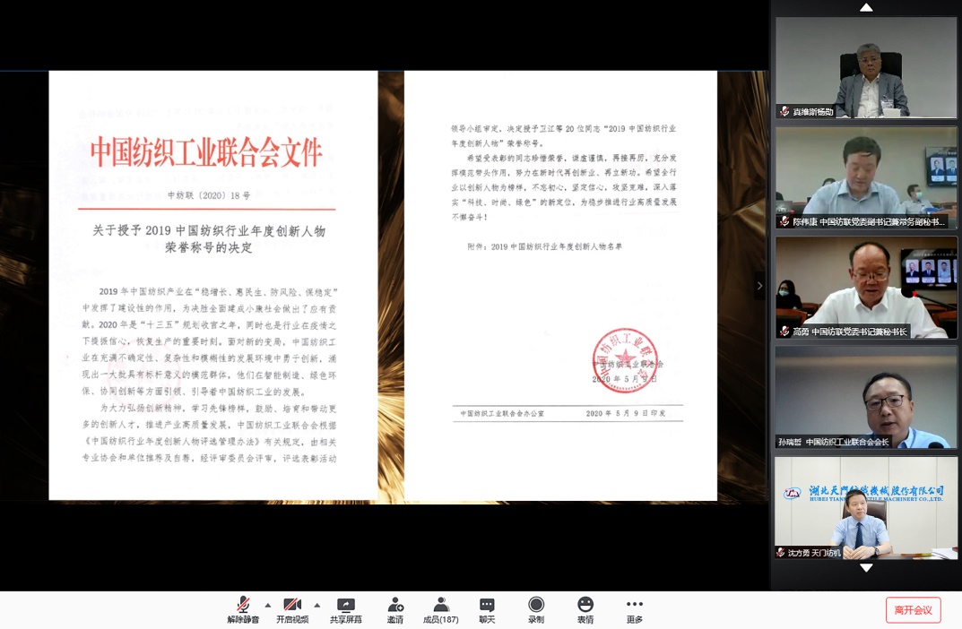 7月28日,中国纺织工业联合会举办“中国纺织行业年度创新人物云论坛”,揭晓年度创新人物评选结果,沈方勇董事长在众多参评企业家中脱颖而出,获评“2019中国纺织行业年度创新人物”荣誉称号。