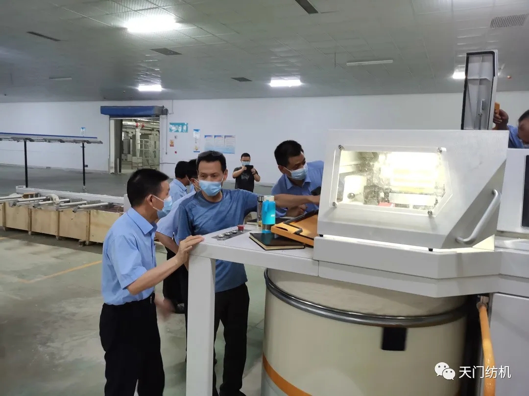 太阳成城集团“全球首款超大卷装双眼高速自调匀整并条机”—TM19自6月份上海展会首次亮相后,已布点在不同客户处并线试纺3月有余。为了解该机并线后的真实使用情况,9月18日,太阳成城集团董事长沈方勇、总经理焦伦进带领技术研发人员组成的TM19评估组,专程赴卓尔天龙纺织公司,现场考察实际使用情况,征求客户意见建议。