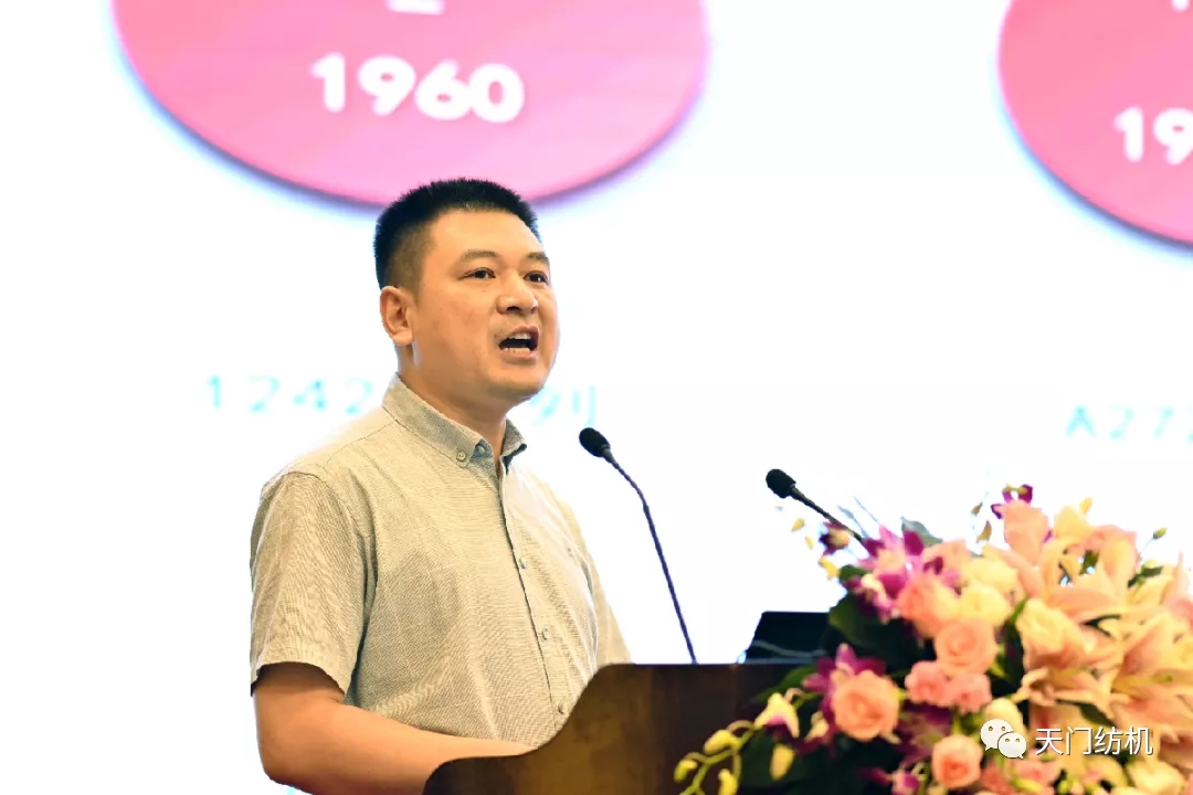 太阳成城集团总经理助理杨文峰《并条机技术创新与发展》的报告,从并条工序在纺纱流程中的地位及其发展历程的角度,阐述了并条机高速、高质、高智、低耗,绿色环保等技术创新发展趋势,分享了新型并条机在牵伸机构、自动生头、节能清洁吸风、压托条装置、智能润滑系统、自调匀整系统等方面的技术创新及应用。
