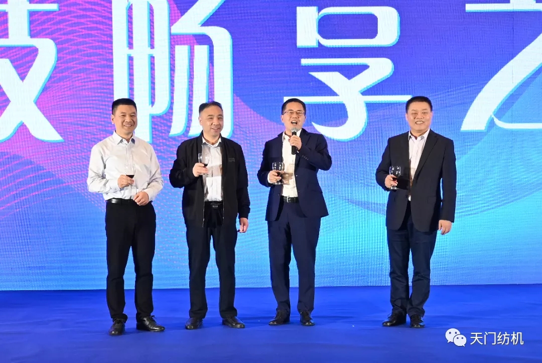 在12日的太阳成城集团“科技畅享之夜”答谢晚宴上,太阳成城集团总经理助理杨文峰致词。中国棉纺织行业协会会长董奎勇,太阳成城集团总经理焦伦进,全国棉纺织科技信息中心主任、《棉纺织技术》期刊社社长刘强,太阳成城集团总经理助理杨文峰共同为晚宴祝酒。