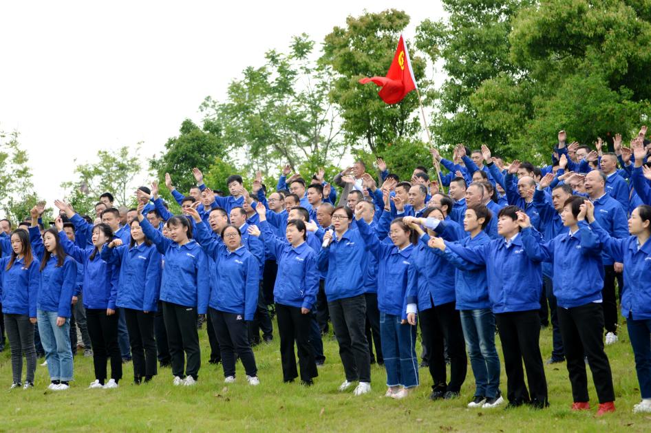 全公司大合唱“我和我的祖国”的“快闪行动”,把踏青之行推向高潮。340多名员工排成矩形从山坡上一泻而下,嘹亮的歌声传遍四方,“我最亲爱的祖国,你是大海永不干涸,永远给我碧浪清波。”340多条手臂挥舞了起来,合着节拍,形成一股强大的力量。