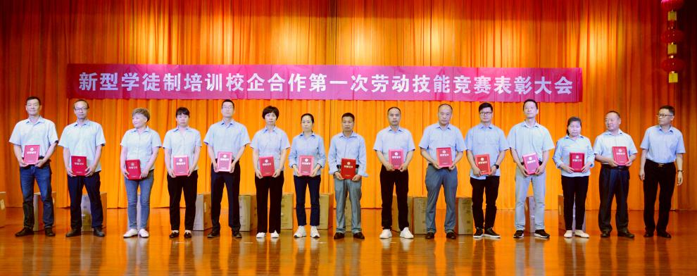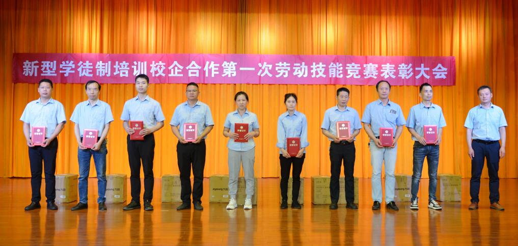 本次表彰大会由太阳成城集团总经理焦伦进主持,太阳成城集团董事长沈方勇、天门职业学院常务副院长汪进兵出席了会议,太阳成城集团党委书记鲁德文宣读了“表彰新型学徒制培训企校合作第一次劳动技能竞赛活动优秀组织者和优胜选手的决定”,34名分获一、二、三等奖的优胜选手和4名喜获优秀组织者奖的竞赛项目工作人员分别登台领取了荣誉证书和奖品。