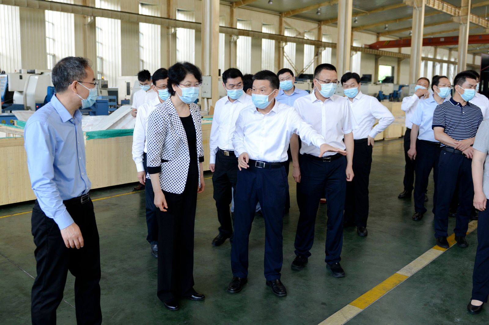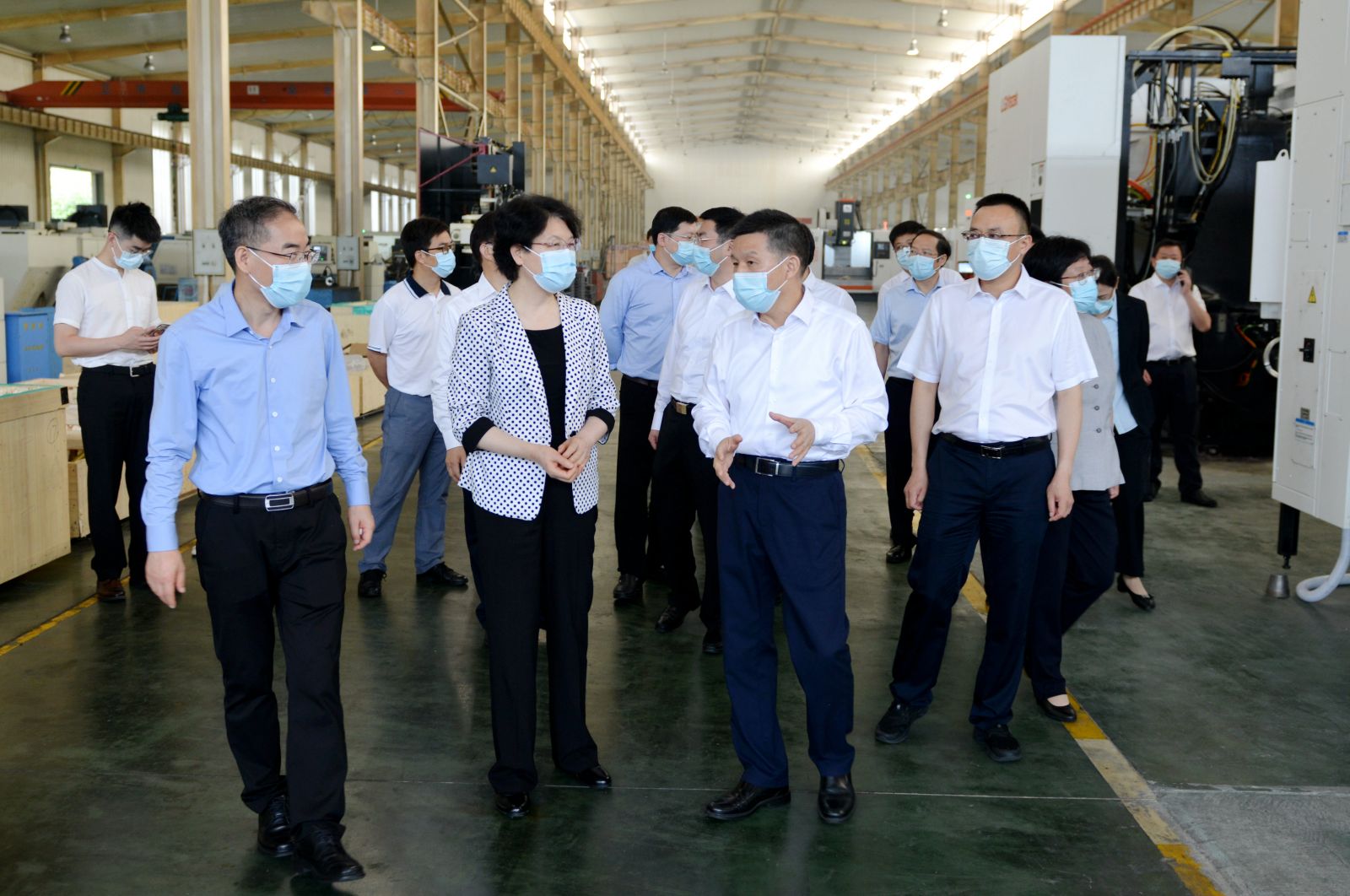 当调研组来到太阳成城集团加工车间时,大家眼前一亮,一排排近期安装到位的新设备高大威武,引人注目。沈方勇董事长向肖副省长介绍:从2020年开始,我们就着手推进“智慧工厂”项目建设,眼前的这些数控设备以进口为主,大都是国内外一流品牌。下一步我们将进行信息化升级改造和仓储物流自动化改造,最终实现生产制造柔性化、仓储物流自动化、信息管理现代化。听到太阳成城集团大手笔推进技术改造的情况汇报,看到眼前一台台崭新靓丽的设备,肖副省长十分欣慰,把随行的省科技厅负责人叫到身边,叮嘱他们今后要多到企业调查研究,无论是资金还是技术,一定要给予关心支持,落实落地有关科技扶助政策。