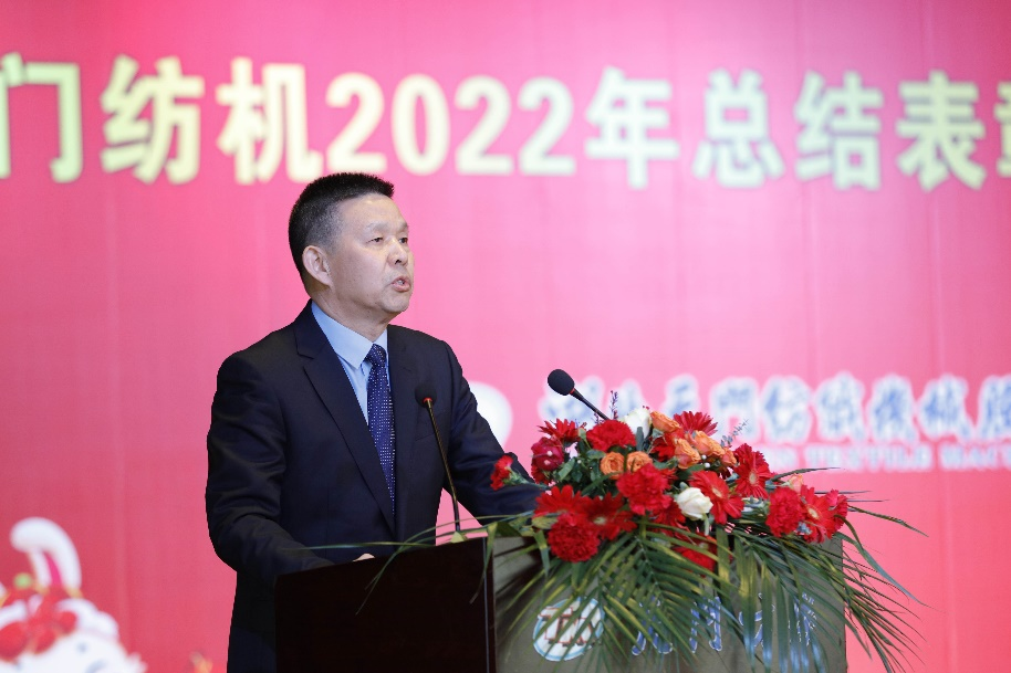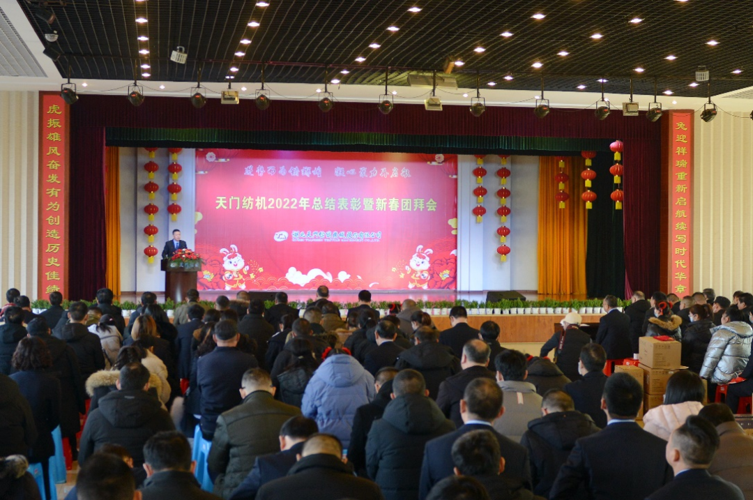 随后,公司董事长沈方勇发表了热情洋溢的新年致辞。他在充分肯定2022年的工作成绩时说:过去的一年,公司T1系列并条机整改完善,再无技术死穴;智慧工厂项目建设顺利推进,数控加工设备基本到位;长江质量奖历时三个月,收获满满;新产品质量鉴定,获得专家好评;“国家级重点专精特新小巨人”项目申报成功,企业地位大增;公司经营业绩突出,再超历史。他在展望新一年美好愿景时深情地讲道:兔年即将到来,我们似乎已经听到了新年的钟声。前不久火起来的一首歌《早安隆回》中有一句歌词“你是我生命中最美的相遇,你若安好便是晴天。”我在这里把他献给你、献给他、献给所有人。祝大家新年快乐,幸福安康,万事如意!