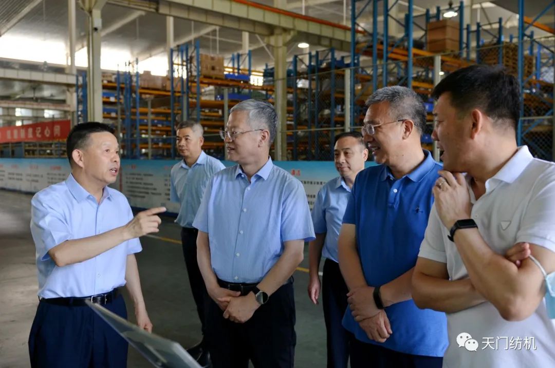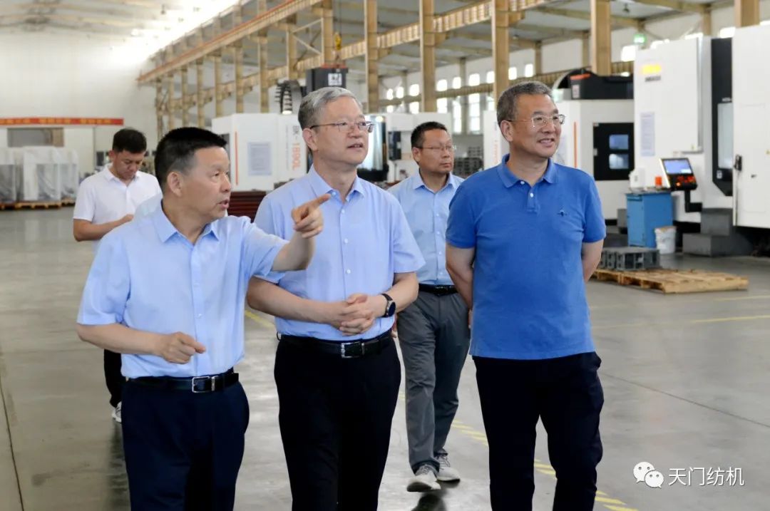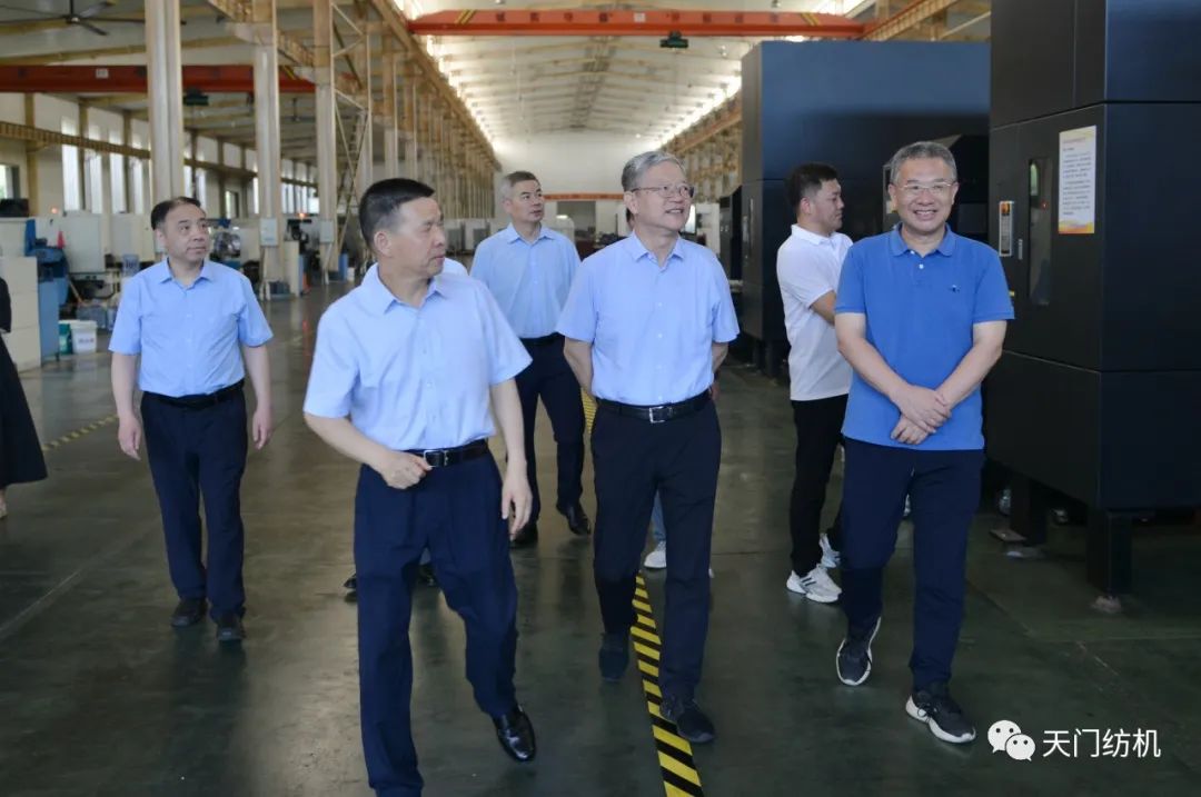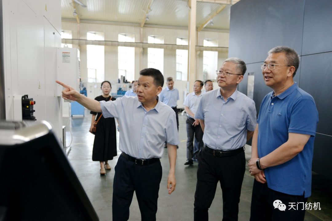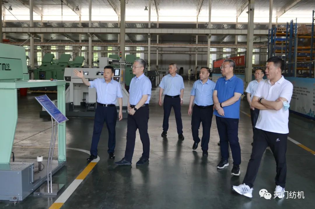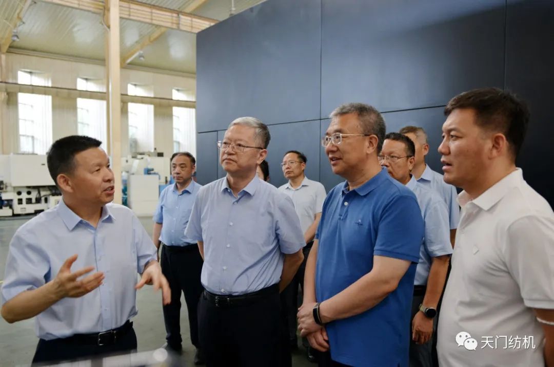 太阳成城集团董事长沈方勇全程予以接待。在装配车间,他介绍说:太阳成城集团着力技术创新和产品更新迭代,一直保持有五年以内的产品储备。2021年开发的以TM13、TM15、TM19为代表的T1系列产品已成为市场主力,去年销售额占公司营业收入60%以上。其中,TM19是超大卷装高速自调匀整并条机,成为棉纺企业实现“并条工序全自调匀整”的理想设备,引领行业潮流。今年公司又开发了TM21、TM23、TM25、TM27等多个T2系列产品,可以保持较长久的市场竞争力。在加工车间,沈方勇董事长继续介绍道:公司从2021年开始“智慧工厂”项目建设,到目前为止已完成智能化设备改造,多条智能生产线已投入使用。其中卧式加工生产线实现了夜间无人值守、24小时不间断运行。夏令敏秘书长听完介绍后,对太阳成城集团加快智能化改造和数字化转型的做法给予了充分的肯定和高度评价。