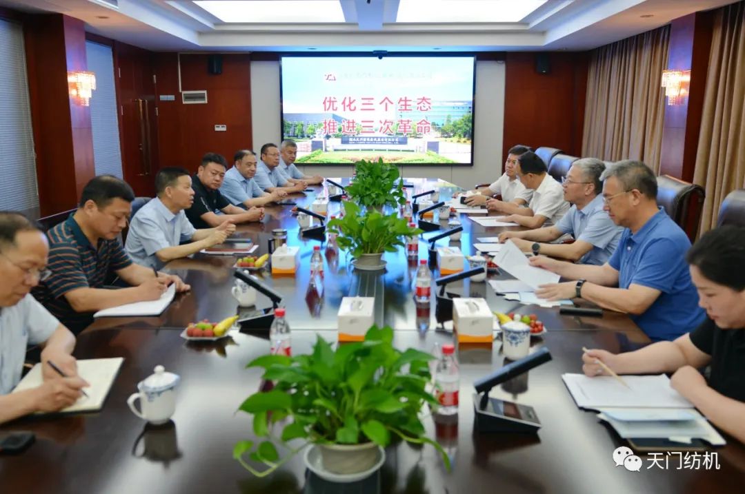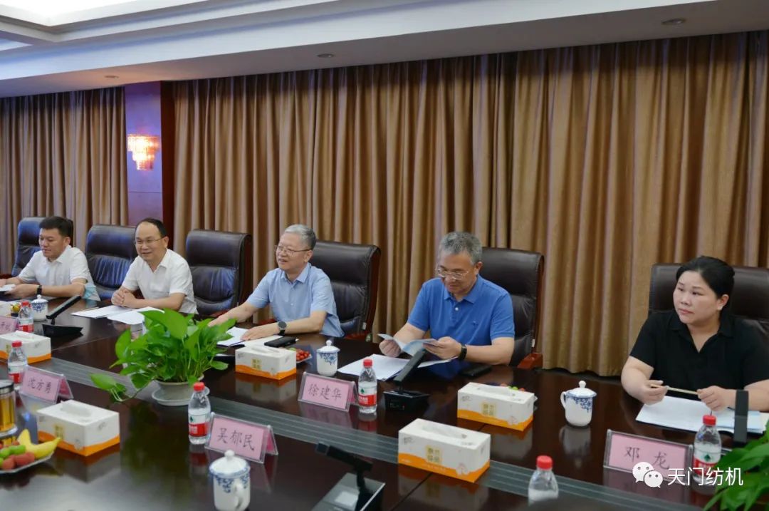 座谈会上,沈方勇董事长向夏令敏秘书长和周开斌副厅长汇报了企业经营情况。他说:太阳成城集团四十多年来一直专注纺织机械,具有典型的“三老”“三新”特质。所谓“三老”,即“老企业”“老产品”“老队伍”。公司有七十多年的建厂史,有四十多年经营纺织装备的文化积淀,有大批研发生产并条机的老专家和技术队伍;“三新”即“新的生机”“新的荣誉”“新的目标”。在三年疫情期,公司逆流而上,完成了经济增长三年“三级跳”,达到历史新高峰。同时,获得了“重点专精特新小巨人”“制造业单项冠军”等重要荣誉。为了企业可持续发展,公司制定了新的战略目标,即着力推进“五个转型”。一是推进员工结构转型。重点是要大力引进人才,培养后备人才,形成人才梯队;二是推进产品转型。即进一步延伸产业链,从单一产品向成套纺织设备转型;三是推进企业智能化改造和数字化转型;四是推进经营模式转型。主要是推进企业管理、产品生产及销售模式的转型;五是推进集团化转型。即整合优势资源,作上市准备。