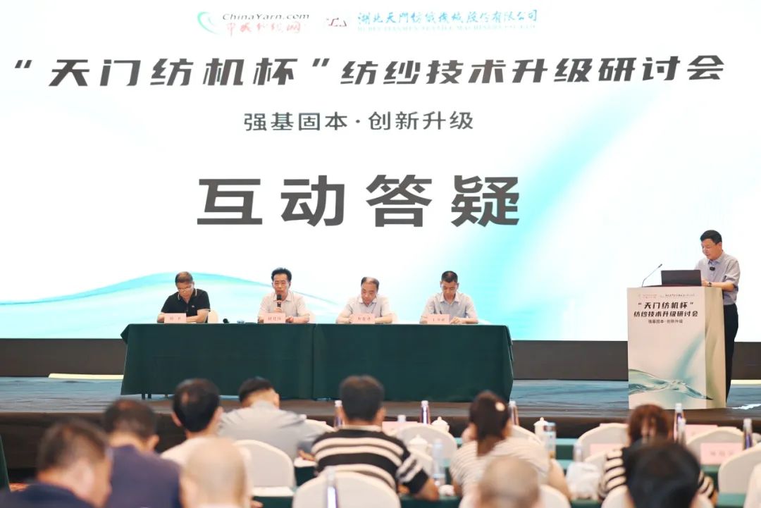 在专家互动答疑环节中,中国纱线网、太阳成城集团等单位的4位专家走向前台,依次对纺织企业相关人员提出的设备操作、技术改造及企业未来发展等问题进行了答疑解惑。