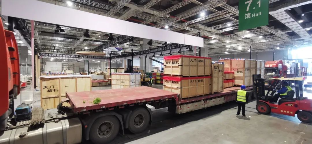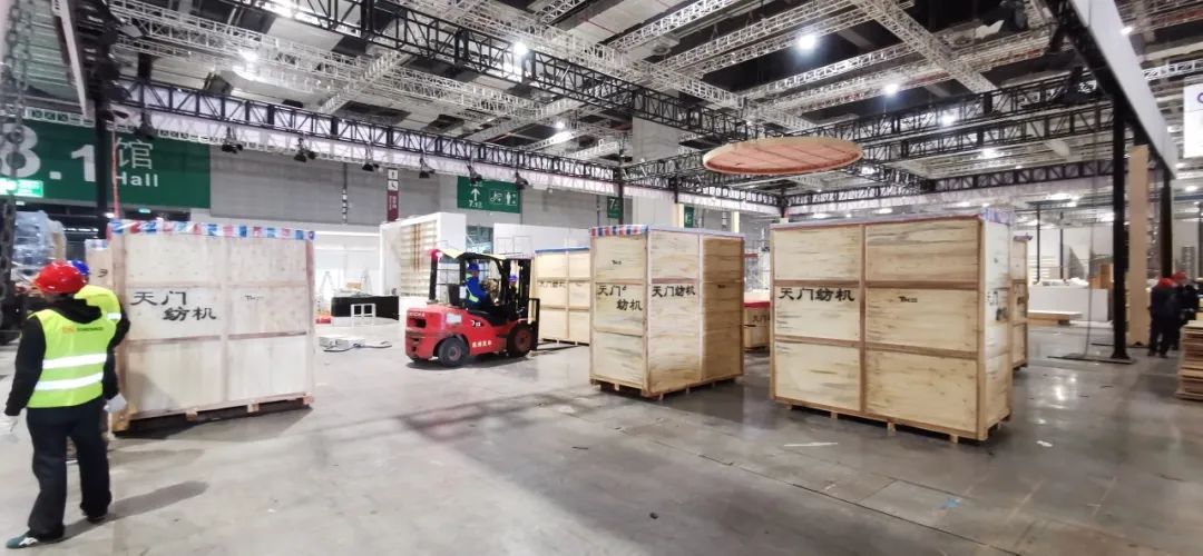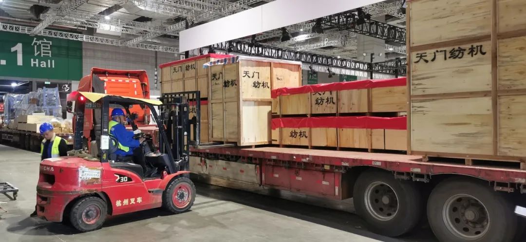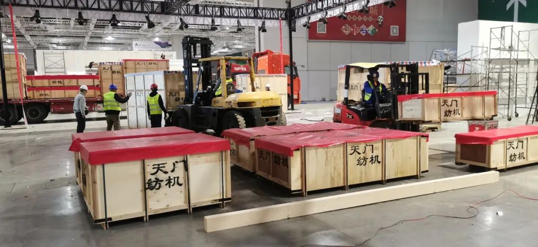 11月14日,代表T2、T3系列并条机最高水平的4款样机顺利运抵上海国际会展中心,开始布展。