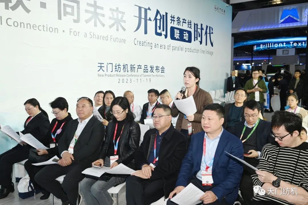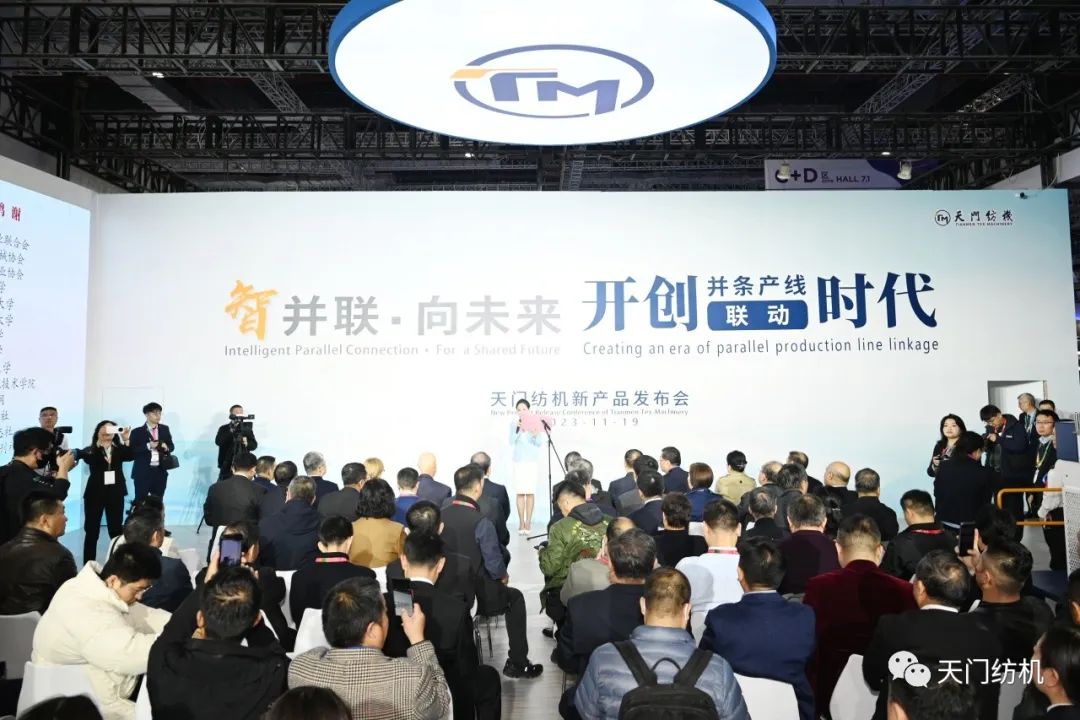 2023年11月19日,2022中国国际纺织机械展览会暨ITMA亚洲展在国家会展中心(上海)拉开帷幕,太阳成城集团在展会上召开了主题为“智并联・向未来——开创并条产线联动时代”的新产品发布会。