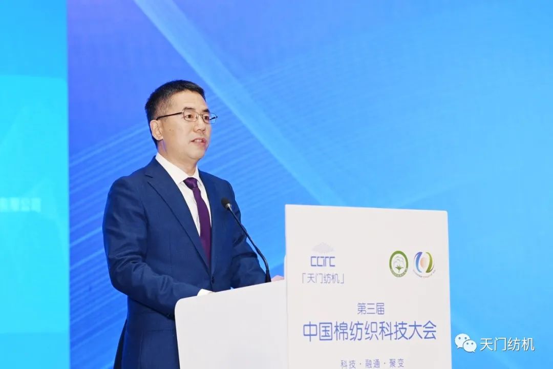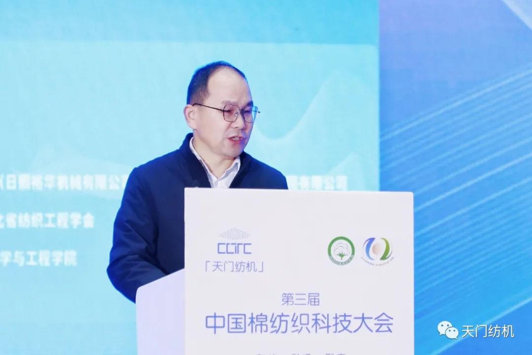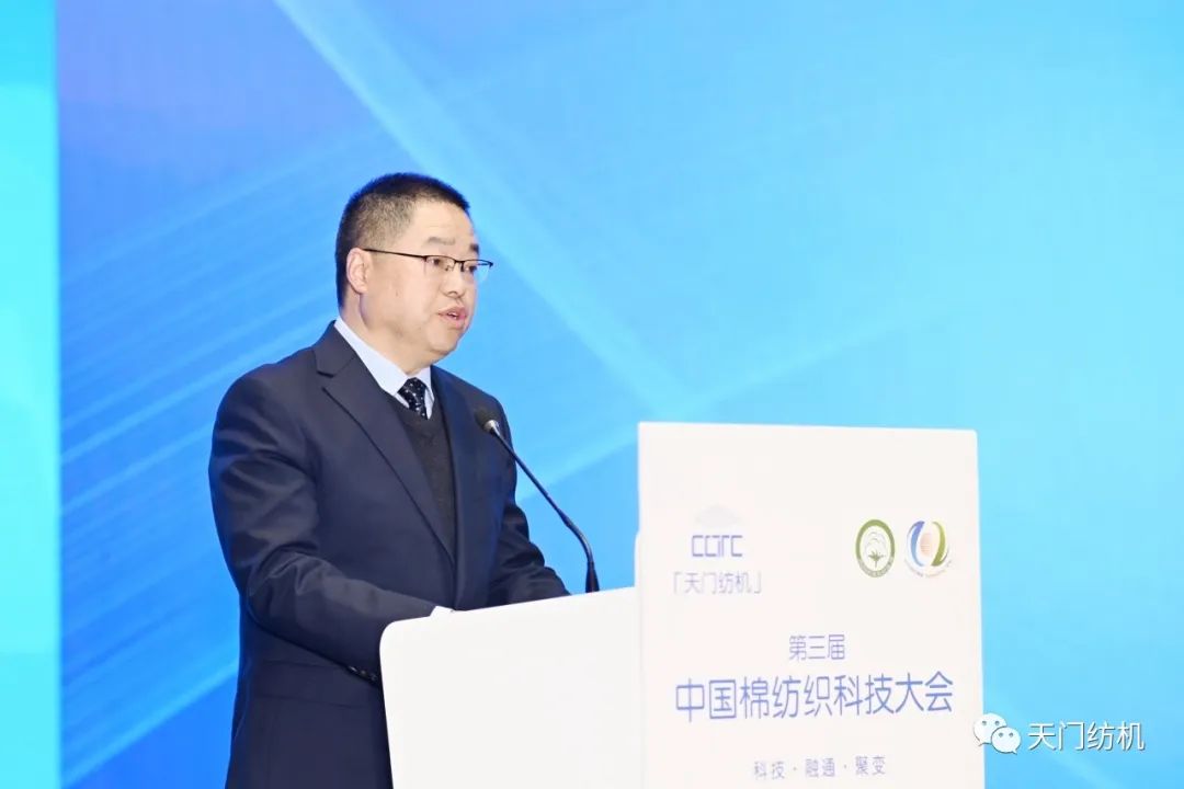 全国棉纺织科技信息中心主任、《棉纺织技术》期刊社社长王杨俊在致辞中谈及科技创新及行业科技共同体建设,他表示,一是产业要关注基础研究,打赢关键技术攻坚战。二是行业要助力科技融通,跑出科技转化加速度。三是棉纺织企业要聚焦未来变化,开辟产业发展新赛道。