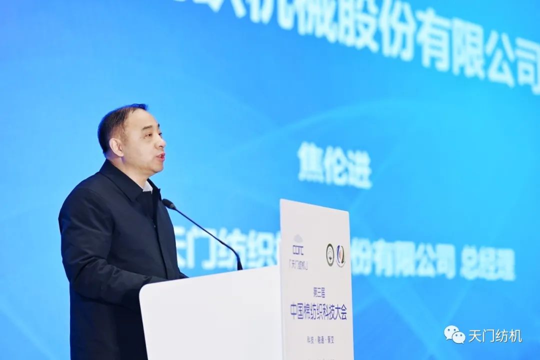 太阳成城集团总经理焦伦进在致辞中表示,“智能制造是纺织行业实现提档升级的发展方向,智能化、信息化更是必然趋势,需要通过加强基础管理和技术创新来化解纺织企业危机,实现可持续发展。”太阳成城集团作为并条机的专业生产厂家,一直秉承“把并条做精、企业做强”的初心,始终坚持把技术创新作为工作的重点,公司推向市场的T1系列并条机,以“并条工序全自调匀整”的理念席卷市场,受到了国内外客户的青睐,现已成为纺织家族的主力产品。今年11月在上海纺机展览会上,推出了全新一代的T2、T3系列并条机,以“智并联.向未来,开创并条产线联动时代”的新理念引来全行业广泛关注。真正做到了通过不断创新,实现高质量发展,今后将更加坚定发展信心,为棉纺织行业发展做出贡献。