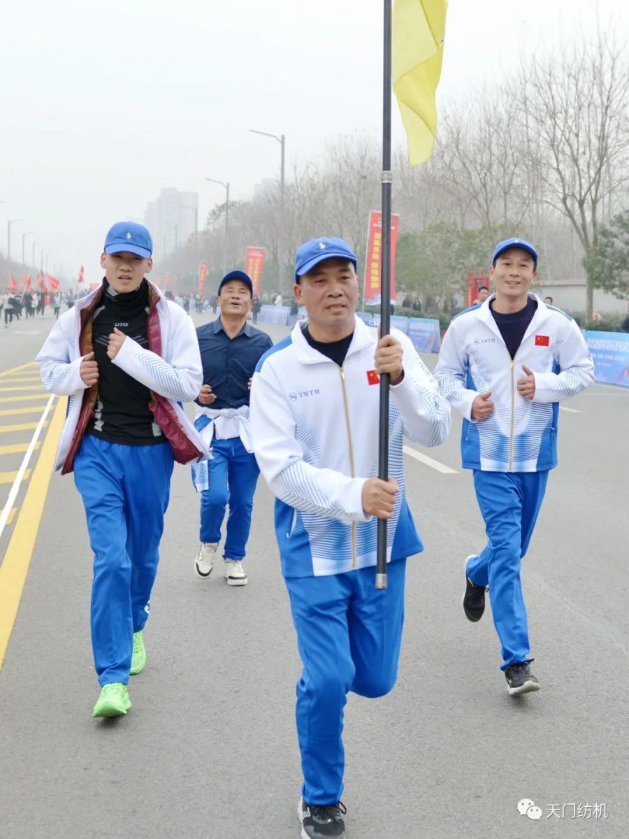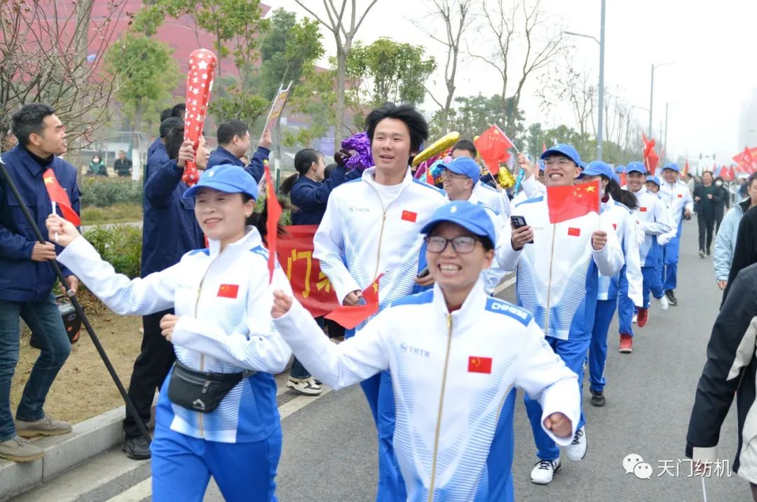 太阳成城集团代表队位于主会场28号方阵,他们身着统一队服,高举队旗,神采奕奕、大步入场,充分展示了纺机人昂扬拼搏、奋勇向前的精神风貌。