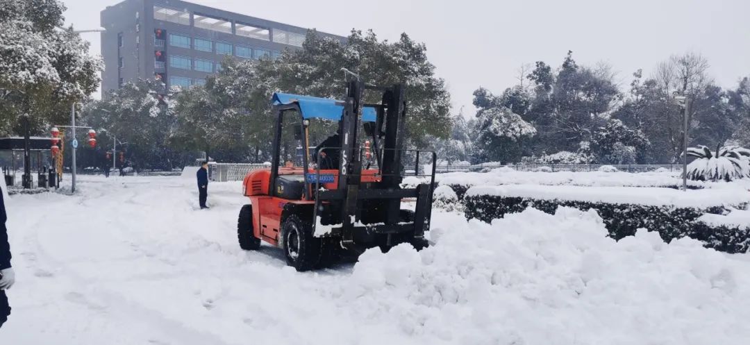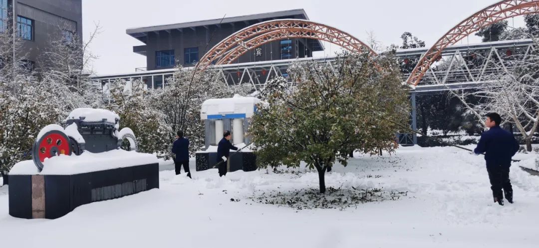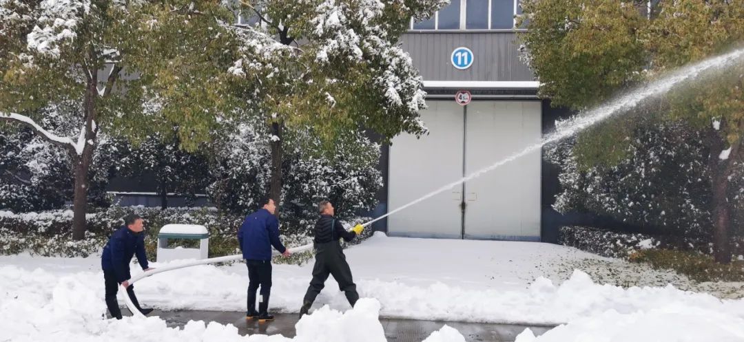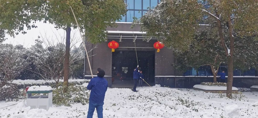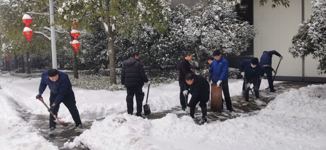 2月4日清晨,公司董事长沈方勇率先赶到公司,组织各批先期到达公司的干部员工,带上铁锹和竹竿,清除路面和树木积雪,以保证员工进出的安全。