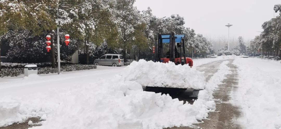 除雪工作不松劲,生产任务更不停歇。大量车间人员按时上岗,并派出多辆铲车加快清理进度。