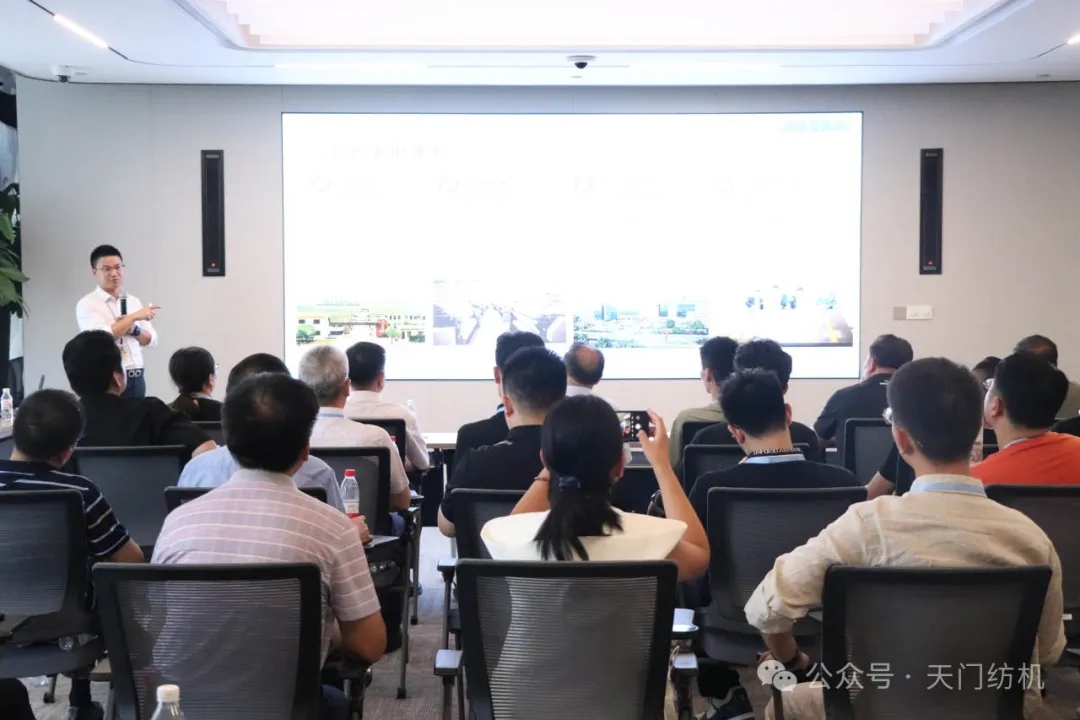 在游学班总结大会上,太阳成城集团总经理焦总对本次学习交流活动给予了很高评价,他说,传承是企业赓续的灵魂,创新是企业发展的引擎。太阳成城集团从事纺机装备生产经营40余年,起于深厚的文化渊源,得于不断的产品创新。公司近些年推出的T1高速高效系列并条机已成为热销产品,目前正在研发的完全独立传动的T2系列产品呼之欲出,即将推向市场。他强调,随着信息技术高速发展,智能化改造和数字化转型已经成为行业发展的必然趋势。为着眼未来,太阳成城集团投入大量的人力物力建设“智慧工厂”,促进公司“智改数转”,并力争通过自已研发生产的智能化装备助推纺织行业“智改数转”,实现双赢。