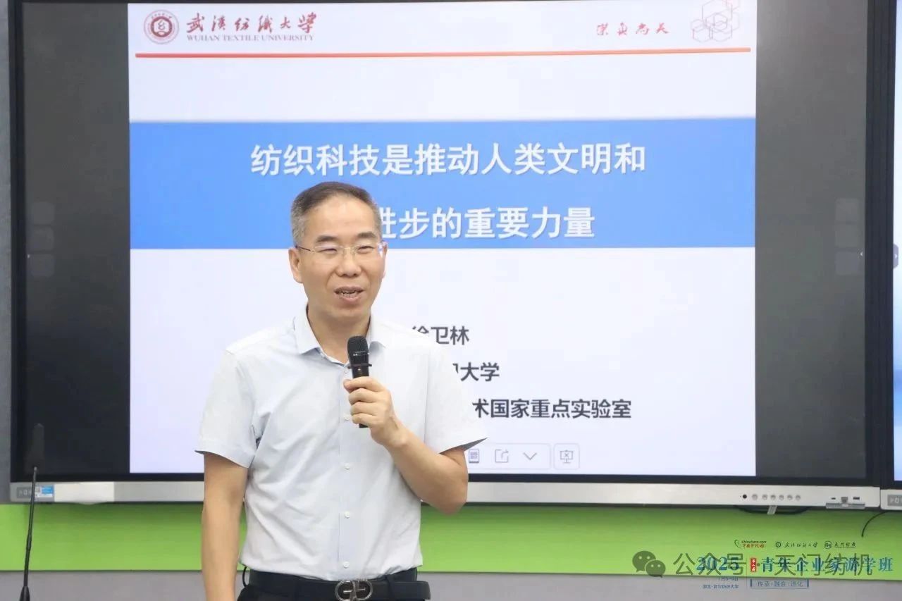 第一课由中国工程院院士、武汉纺织大学党委书记徐卫林主讲,主题为《纺织科技是推动人类文明和社会进步的力量》。他从纺织起源开始娓娓道来,贯通文化、品牌与时尚,深入剖析纺织科技的发展脉络与未来趋势,为学员们带来前瞻视野。