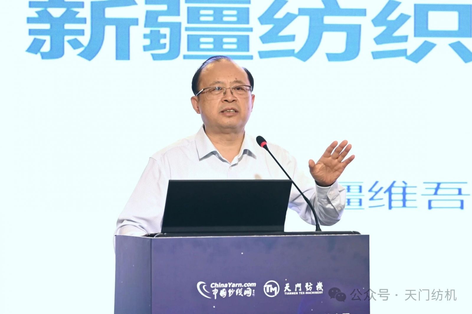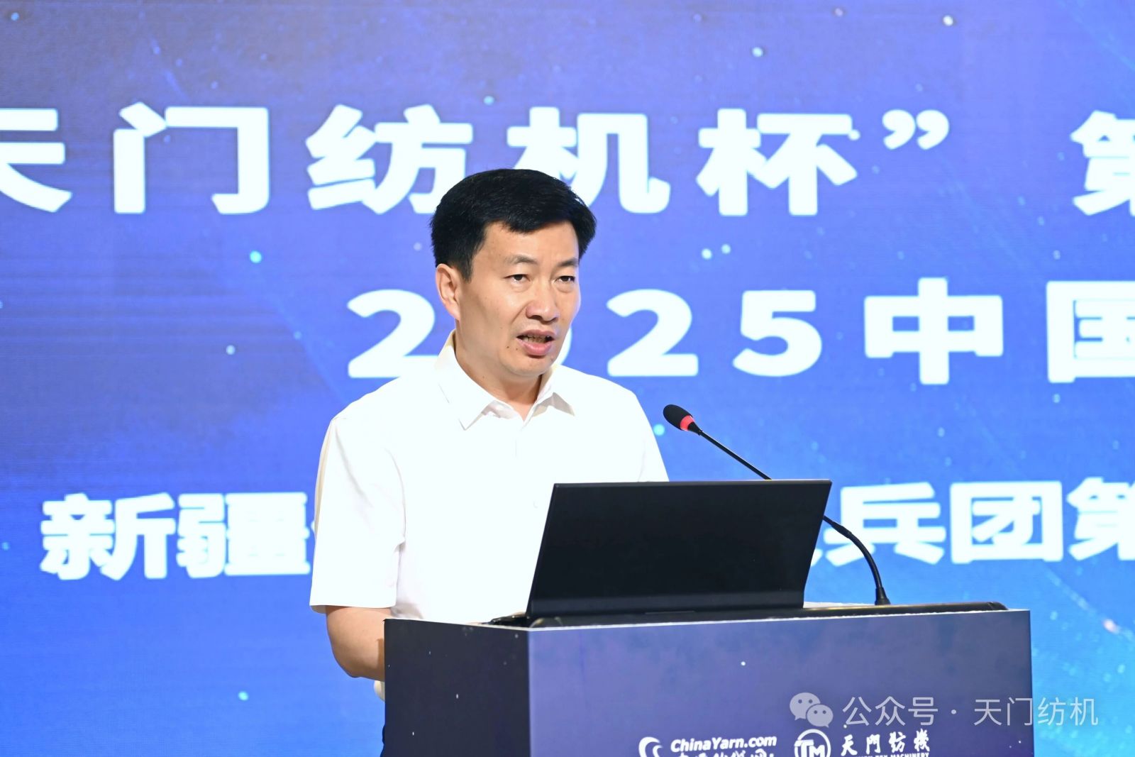 会上,新疆生产建设兵团第三师图木舒克市党委常委、副师长丁伟致辞,他指出,新疆是全国重要纺织基地,而图木舒克市位于新疆西南部,区位优势显著,产业链完整,获得了国家纺织服装外贸转型升级基地认定。他相信,本次峰会将为行业高质量发展注入新动能。