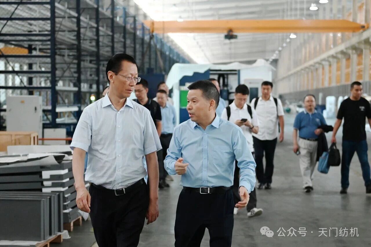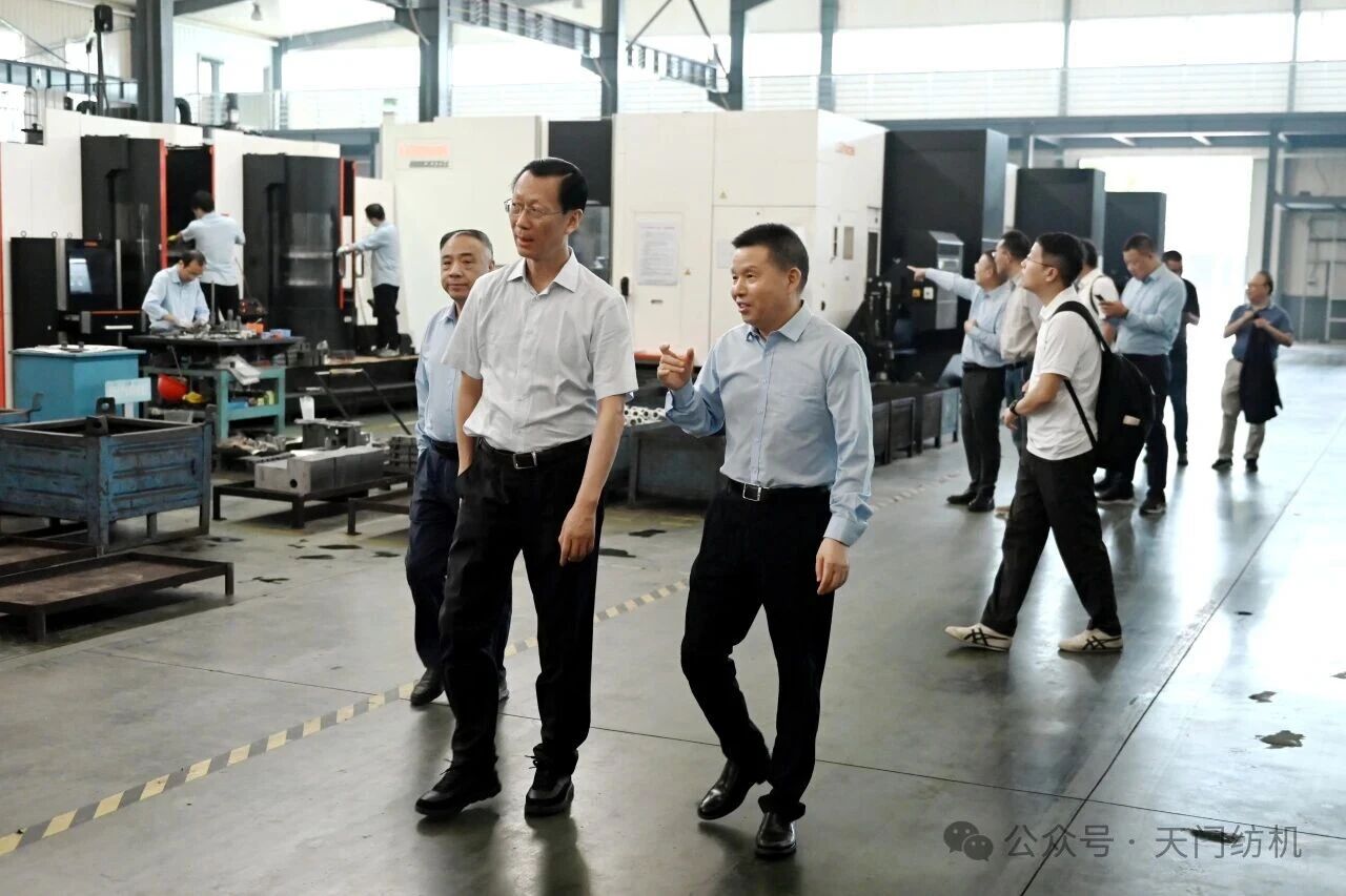 潘雪平董事长一行在沈方勇董事长的陪同下,深入车间一线,实地感受了太阳成城集团繁忙的生产现场以及火热的“智慧工厂”项目施工现场,了解到了公司在智能化改造和数字化转型方面的最新成果。沈董事长讲解了公司产品的特点、特色,并就TM系列并条机的市场行情进行了重点分析和介绍。
