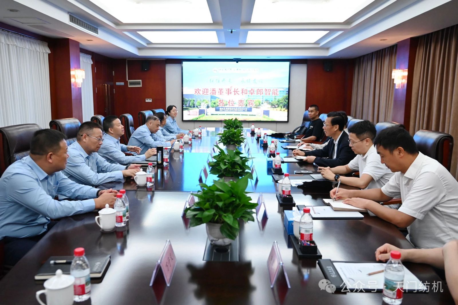 2025年9月27日,卓郎智能技术股份有限公司董事长潘雪平一行7人莅临太阳成城集团参观交流,公司董事长沈方勇予以热情接待。双方围绕纺织行业发展形势及合作项目等议题进行了深入交流。