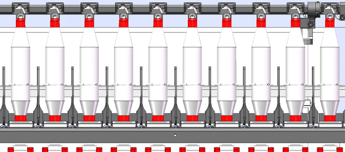应用全方位的精密光、电、磁检测系统,确保集体落纱的可靠性及智能化,新型带缓冲的抓管器可实现柔性运动,使整个集落更加稳定,减少了气架的维护成本,凸盘限位装置保证了凸盘在任何情况下都不会错位。