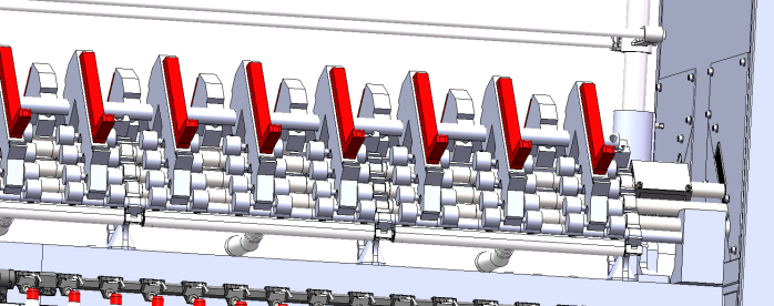 整体式全定位机架,整体式中墙板,各个安装部件全部采用直接定位的结构,提高了安装效率和安装精度,保证了高速运行的稳定。